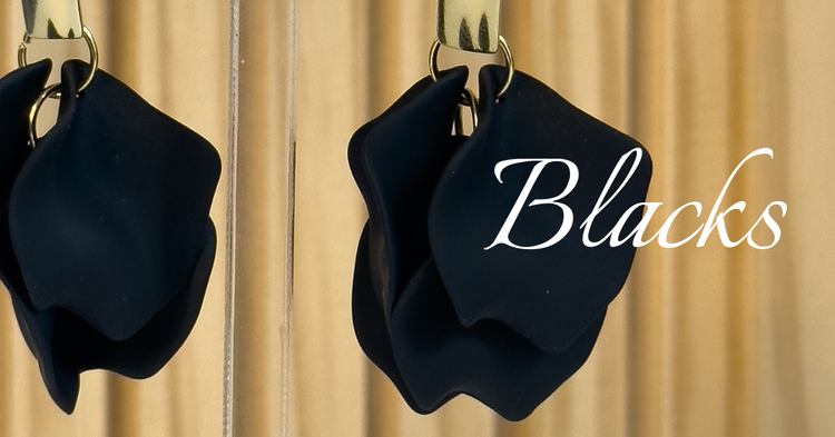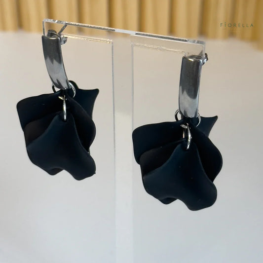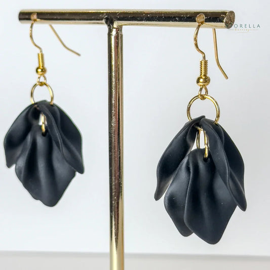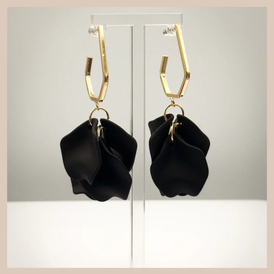 Small Petal Cluster Drop Earrings - Jet Black & Gold