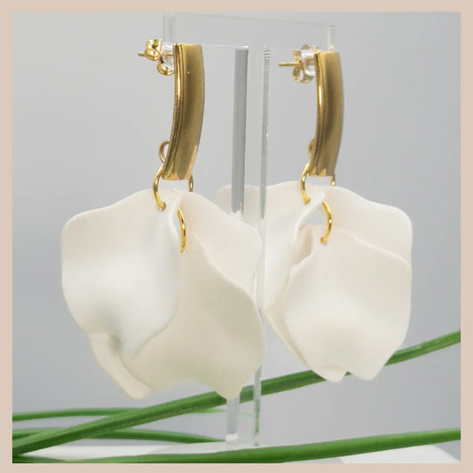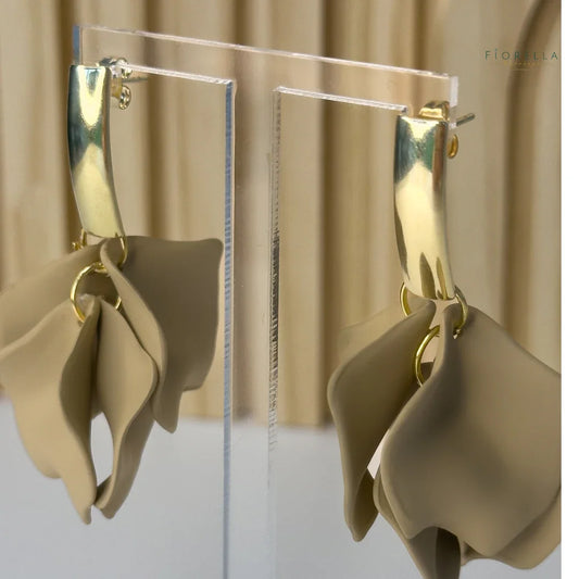 Natural Stone Effect Water Drop Small Earrings - Neutral Beige