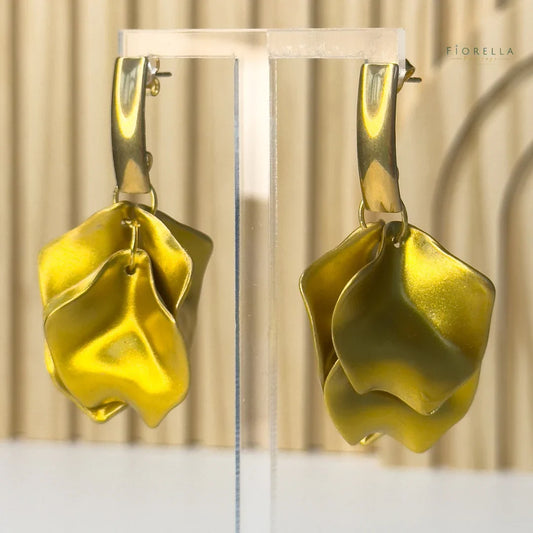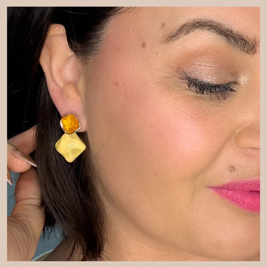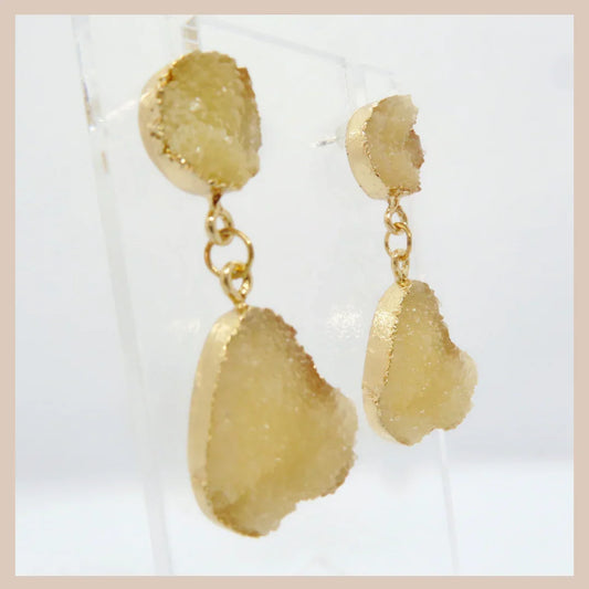 Natural Stone Effect Water Drop Small Earrings - Citrine Yellow