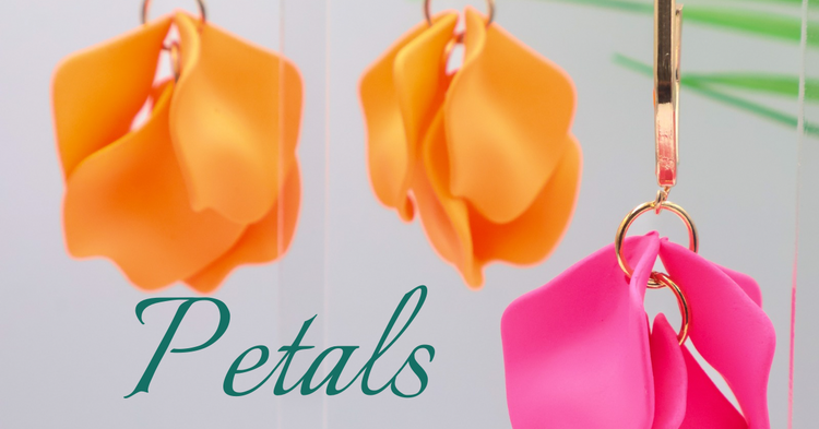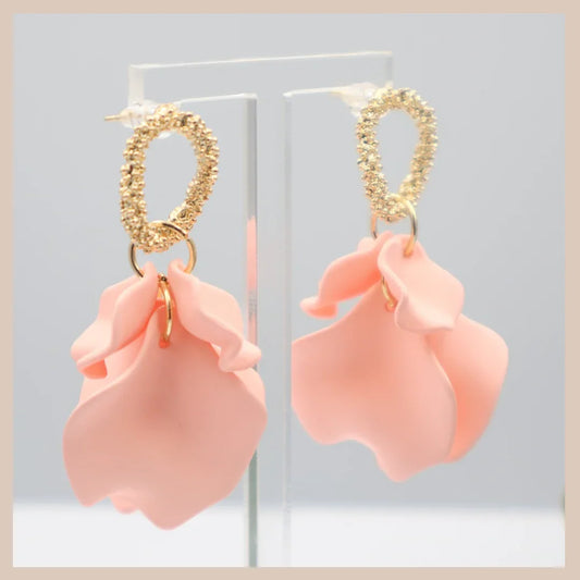 Acrylic Petal Small Cluster Drop Earrings - Soft Pink & Gold