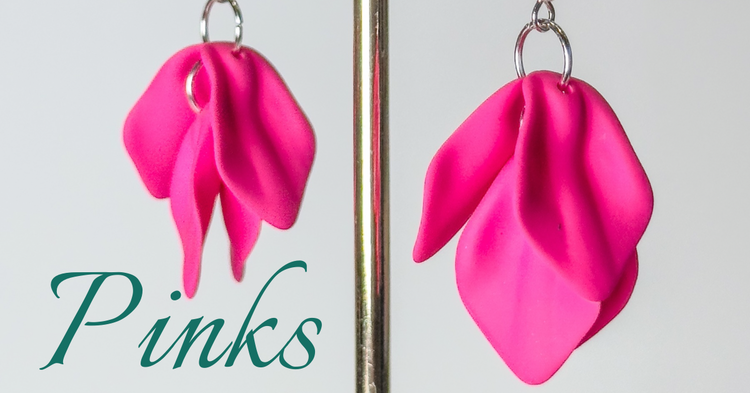 Pink-toned earrings featuring versatile styles in soft and bold pink shades.