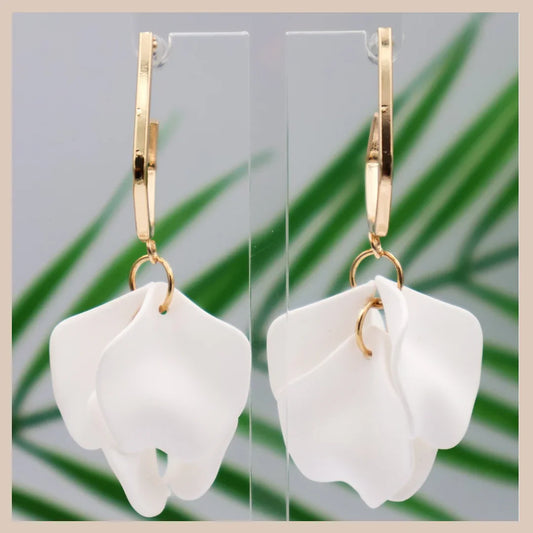 Large Petal Drop Earrings - White