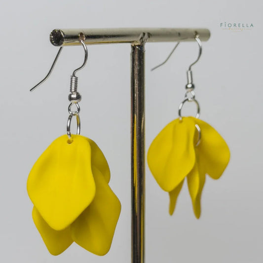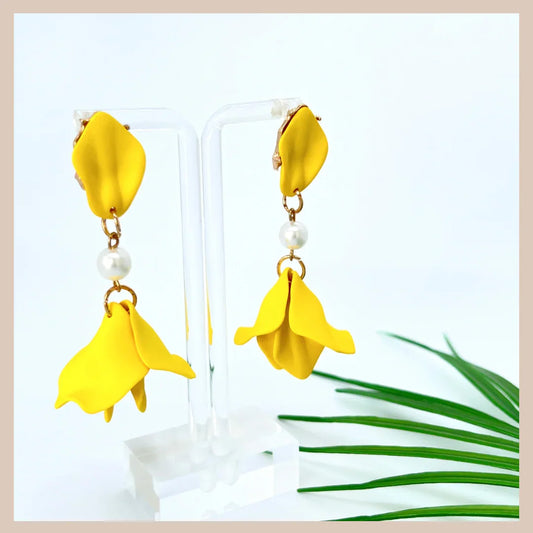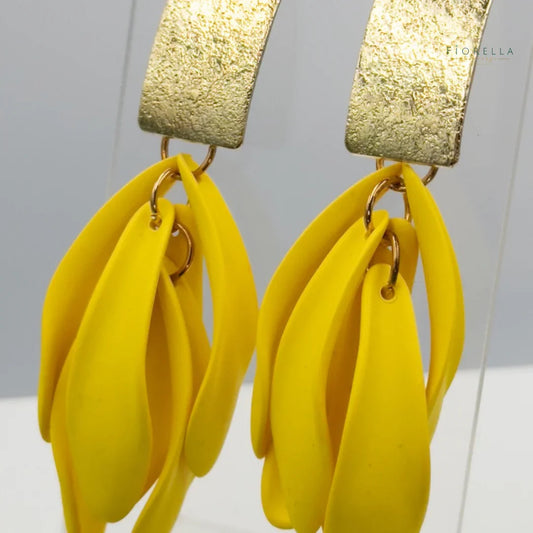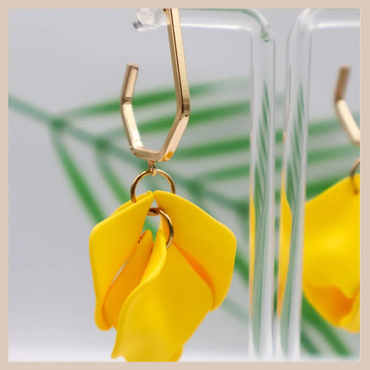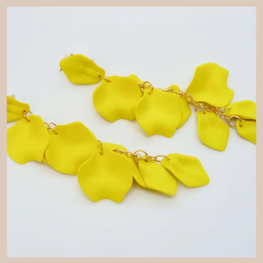 Acrylic Petal Tassel Drop Earrings - Yellow