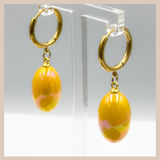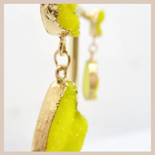Natural Stone Effect Water Drop Small Earrings - Citrine Yellow