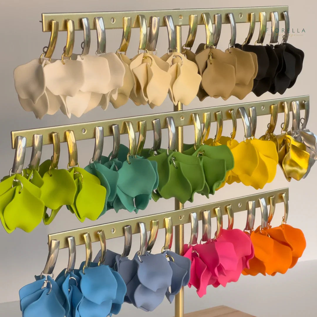 Available in a spectrum of vibrant and neutral hues, these earrings let you express your unique flair whether you’re dressing up for a special occasion or adding a playful pop to your everyday look.