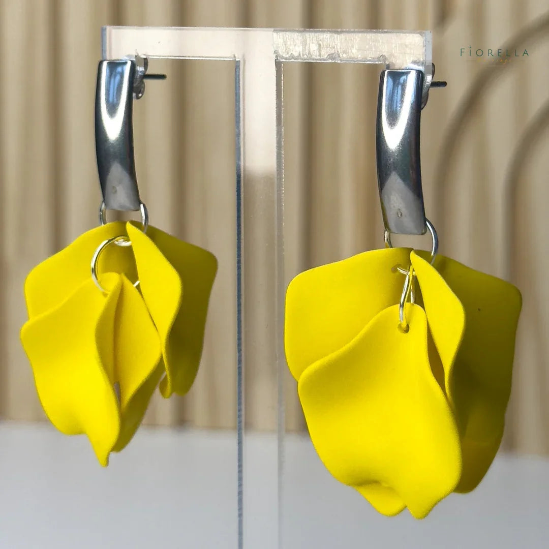 Elevate your style with these Petal Arc Drop Earrings, featuring layered, sculpted medium petals that bloom gracefully from a sleek, curved metal top.