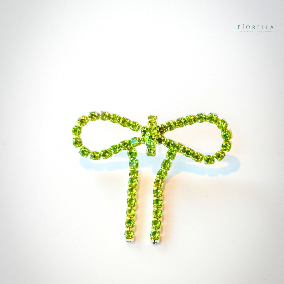 Fresh, fun and full of sparkle — our Green Diamanté Wide Bow Earrings are the perfect pop of colour for any outfit. Designed with vibrant green crystals and a bold wide bow shape, they bring playful sophistication to both day and night looks. Lightweight and comfortable, these statement studs make glamour feel effortless.