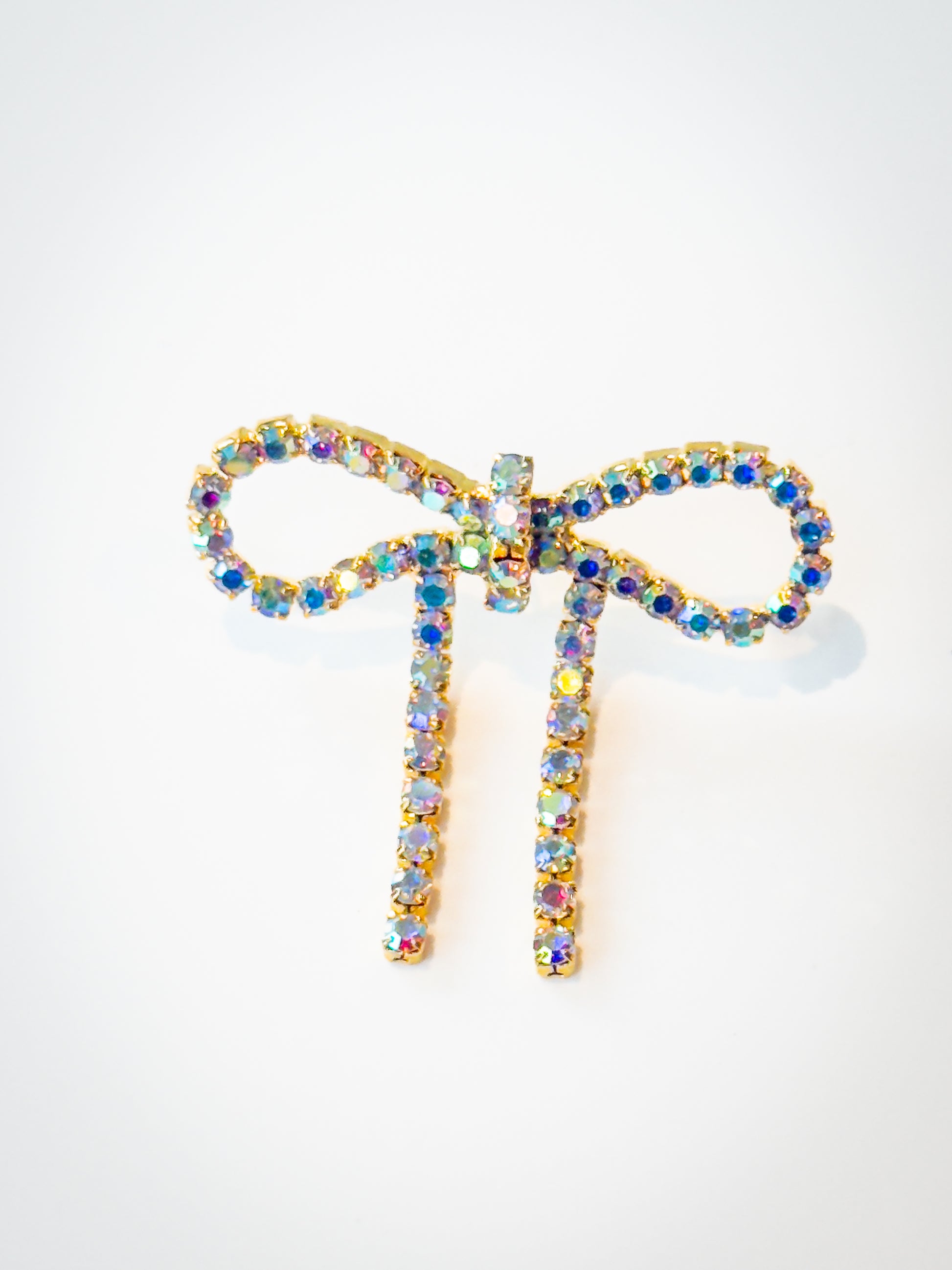 Radiant and refined — our Iridescent Gold Diamanté Wide Bow Earrings are the definition of understated glamour. With a glimmering gold base and crystal stones that catch the light in every hue, these earrings elevate any look with their soft sparkle and timeless bow silhouette. The ideal pair to take you from day to night, effortlessly.