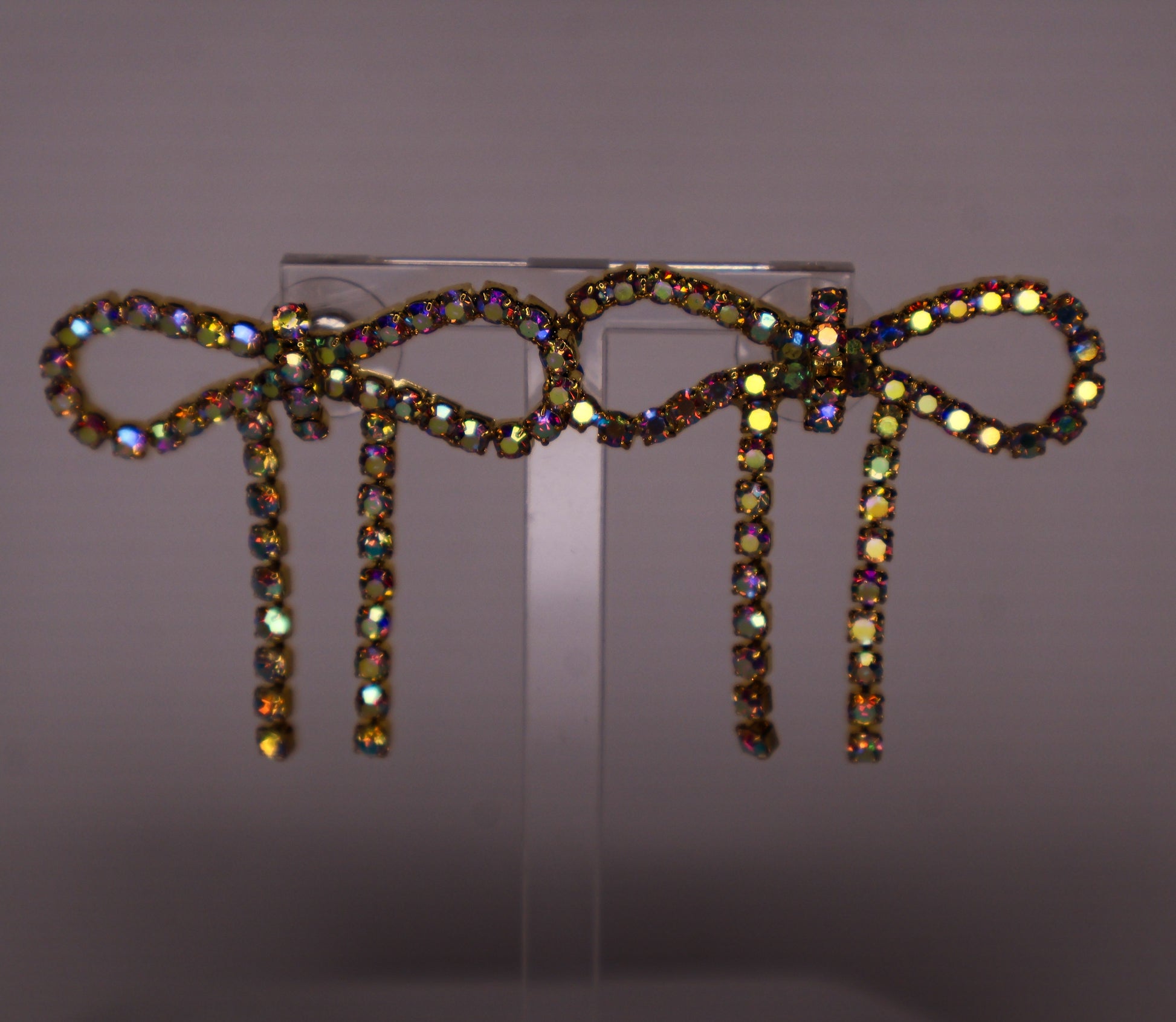 Iridescent Gold Diamanté Wide Bow Earrings