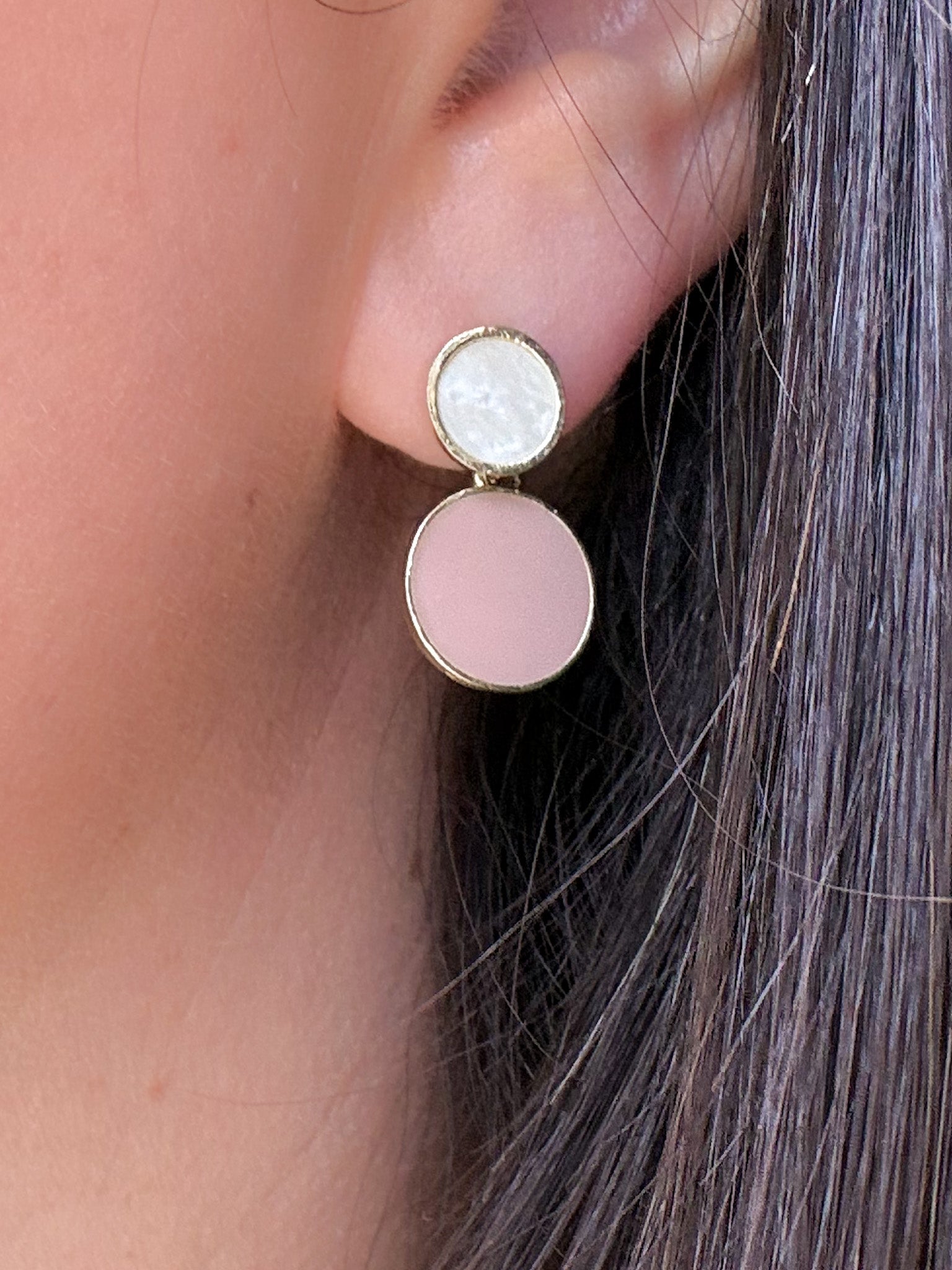 Soft, warm and effortlessly wearable — our Sand Luna Duo Studs pair a pearlescent top disc with a smooth sand-toned enamel drop.