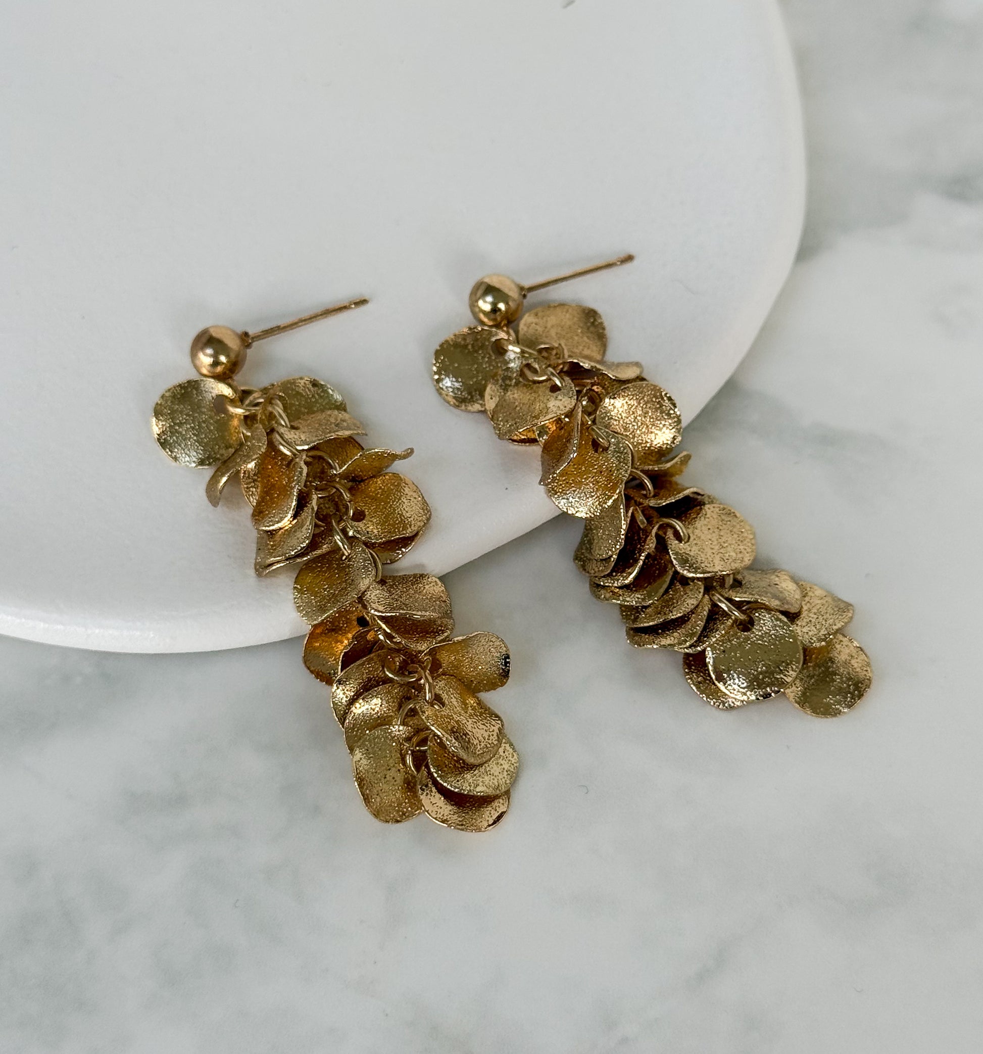 Made up of softly textured, overlapping discs, these earrings move beautifully as you wear them, giving subtle shimmer without feeling heavy or overdone.